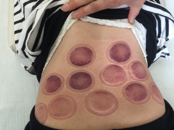 当院では淤血(オケツ)と呼び、もう60年以上も前から行っている吸い玉療法で出る色(下写真)、